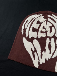 Japanese Brand - are Y2K Meechy Club No Cuff Knit Skull Cap Brown Beanie Hat
