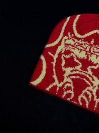 Japanese Brand - Chief Keef Glo Gang Graphic No Cuff Red Mohair Beanie Hat OS