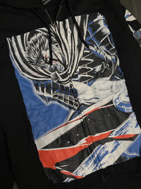Deadstock Berserk Guts Jumbo Print Black Hoodie Medium / It features a jumbo tonal print of Guts at the center, with "The Black Swordsman" printed on one sleeve and his Dragon Slayer sword on the other sleeve. Comes with hood, pockets and drawstring cords. / 60% Cotton; 40% Polyester Condition: Brand New Size: Medium Measurements: Length / 69cm Shoulders / 50cm Chest / 112cm Sleeves / 61cm Color: Black / Multicolor * Dedicatedly take care of all products before shipping to customer. ✨Dispatch in 3 days ✨NO Returns / Exchanges. ✨Worldwide shipping. ✨Please check my other items and follow my shop for regular updates. ✨I wish you a pleasant and reasonable shopping.