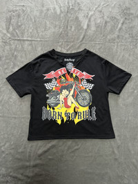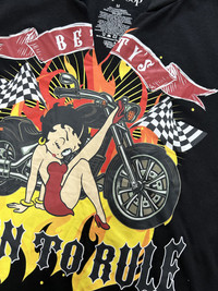 Japanese Brand - Deadstock Betty Boop Motorcycle Print Black T-Shirt Medium