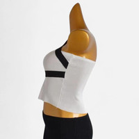 Japanese Brand - Deadstock black and white knit striped one shoulder tank top