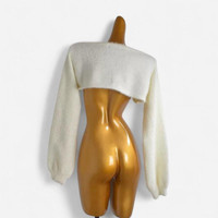 Japanese Brand - Deadstock Cream and White Fuzzy Knitted Bolero US4