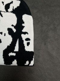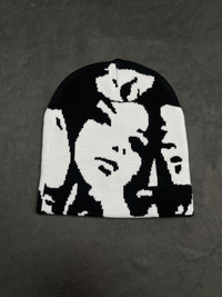 Japanese Brand - Deadstock Ghost Faces Graphic No Cuff Beanie Hat Black OS