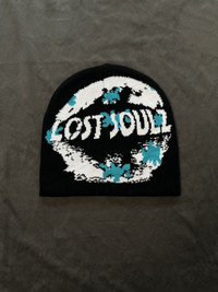 Japanese Brand - Deadstock Lost Soulz Graphic No Cuff Black Beanie Hats OS