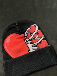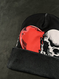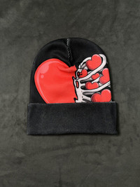 Japanese Brand - Deadstock Skull Heart Gothic Y2k Knit Black Beanie Hat OS
