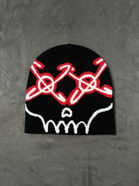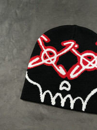 Japanese Brand - Deadstock Y2k Skull No Cuff Knit Black Beanie Hat OS