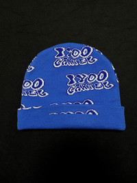 Japanese Brand - IYOO Carter Graffiti Fonts No Cuff Knit Beanie Hat Blue