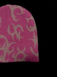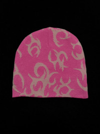 Japanese Brand - Pink Flames Y2K No Cuff Winter Knit Beanie Hat OS