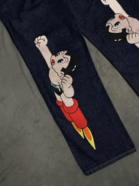 Rare Astro Boy Graphic Design Denim Jeans 32 - Dark Wash Stand out with these eye-catching dark wash denim jeans featuring bold, vibrant Astro Boy Print on both legs. Designed for fans of classic anime and vintage streetwear, these pants showcase Astro Boy in his iconic flying pose with detailed stitching and bright colors that pop. / Straight-leg, mid-rise Condition: Brand New Size: 32 Measurements: Waist / 80cm Inseam / 33cm Leg Open / 23cm Front Rise / 79cm Color: Dark Denim * Dedicatedly take care of all products before shipping to customer. - - - **Please see my other listings for more styles. **Message me with any inquiries - - - ✨Dispatch in 4 days ✨NO Returns / Exchanges. ✨Worldwide shipping. ✨Please check my other items and follow my shop for regular updates. ✨I wish you a pleasant and reasonable shopping. - - - hiphop y2k party holiday vacation trendy gifting casual outfit skater dailyfit cozy #hype #hypebeast #trendy #hiphop #y2k