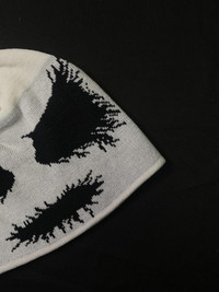 Japanese Brand - Rare Black Distorted Face No Cuff Knit White Beanie OS