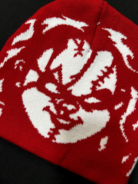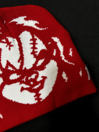 Japanese Brand - Rare Chunky Graphic No Cuff Knit Red Beanie Hats OS