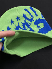 Rare Handprint Graphic Design No Cuff Knit Green Beanie OS Condition: Brand New Size: OS Color: Green / Blue Measurements: 23cm*22cm * Dedicatedly take care of all products before shipping to customer. Payment - NO Returns / Exchanges. - *** Worldwide shipping. - *** Pls give your phone number after purchase. - *** Very low express shipping all over the world. - *** Please check my other items and follow my shop for regular updates. - *** I wish you a pleasant and reasonable shopping.