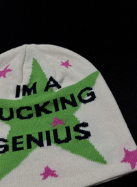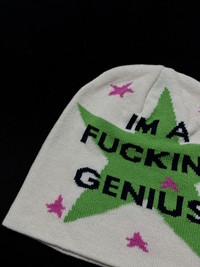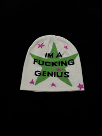Japanese Brand - Rare I’m a Fucking Genius Slogan No Cuff Knit Beanie OS
