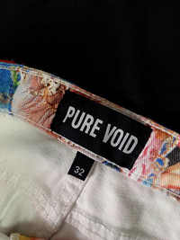 A rare pair of jeans from now defunct brand Pure Void. A cool creative streetwear DIY adjacent brand that was short lived made by legendary portrait photographer Parker Day. These jeans feature a collage of some of Parker Days most colorful portraits. Seen on many at the time including Eric Andre, pieces from this brand are hard to come by now. -Unique rubber back patch with Pure Void logo -Custom Pure Void purple button Condition: Gently Used Size: Large / 32 Measurements: Waist / 82cm Leg Opening / 18cm Inseam / 86cm Front Rise / 27cm Color: Multicolor * Dedicatedly take care of all products before shipping to customer. - - - **Please see my other listings for more styles. **Message me with any inquiries - - - ✨Dispatch in 3 days ✨NO Returns / Exchanges. ✨Worldwide shipping. Hiphop / 90s / Art / Swag / Deadstock / Rare / 00s / Outfit / #hype #hypebeast #loosefit #oldschool #rare