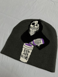 Japanese Brand - Rare Richfeenz Death Graphic No Cuff Knit Hat Beanie OS