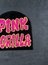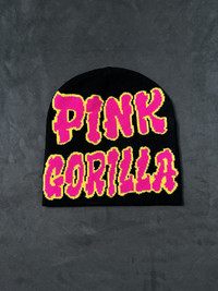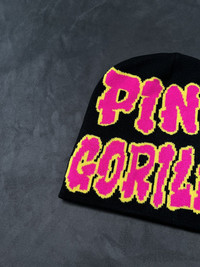 Japanese Brand - Rare Y2k Pink Gorilla No Cuff Knit Black Beanie Hat OS