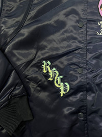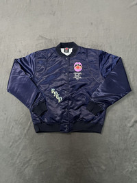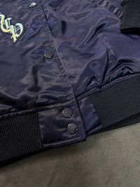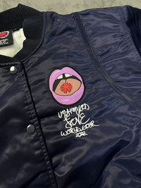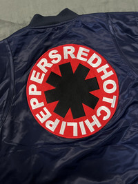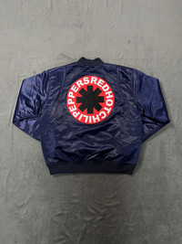 Rare Red Hot Chili Peppers Embroidered Satin Official Tour Bomber Small / Satin bomber jacket with quilted lining and lightweight padding for structured fit / 1x1 ribbed cuffs and hem, welt pockets, and snap front closure / Premium woven embroidery patches and direct embroidery at left and right chest panels and center back / 100% nylon shell, 100% polyester lining Condition: Brand New Size: Small Color: Navy / Red * Dedicatedly take care of all products before shipping to customer. Payment - NO Returns / Exchanges. - *** Worldwide shipping. - *** Pls give your phone number after purchase. - *** Very low express shipping all over the world. - *** Please check my other items and follow my shop for regular updates. - *** I wish you a pleasant and reasonable shopping.
