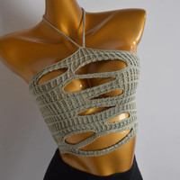 Khaki Handmade Vibes Serve up boho meets baddie in this light grey crochet halter top. Featuring cutout detailing and a daring open design, it’s the ultimate summer piece to turn heads. The textured knit and open weave give it festival flair, while the flattering halter shape makes it perfect for layering over bikinis, bralettes, or nothing at all 😏 Great for beach days, raves, or channelling your inner Pinterest it-girl 🌊✨ - - - One size bust 54-90cm, length 20cm - - - ✨Worldwide shipping ✨Dispatch in 3 days ✨No return/exchange ✨Message me with any inquiries - - - Women’s: Tags: party · unisex · gift · goblin · modern · festival · soft grunge • opium • dark fairy • grunge · fairycore • Goblincore • Cottagecore • harajuku · balletcore · whimsical · punk · dark romance · wastland · western · grungepunk · unique · trendy #crochettop #cutoutstyle #haltertop #bohochic #eclecticstyle