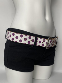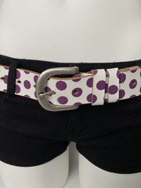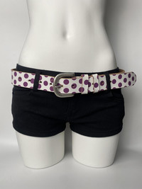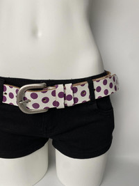 Deadstock Vintage Polka dots Statement Retro Unisex Genuine Leather Belt Colour: Purple / White Vintage deadstock genuine leather belt with unique cork design. -90s Y2K belt -bold graphic Condition: Brand new never worn. **This piece has been in storage for several years and shows minor signs of aging, including some slight peeling/flaking on parts of the surface. Please refer to the photos for detailed condition – all imperfections are clearly shown. **Overall structure is intact. Length: 115 cm Width: 3.5 cm Suitable for waist length 82-106 cm - - - ✨Worldwide shipping ✨Dispatch in 3 days ✨No return/exchange ✨Message me with any inquiries - - - Retro streetwear vibes, perfect for grunge or indie sleaze fits. party · unisex · gift · goblin · modern · festival · soft grunge • opium • dark fairy • grunge · fairycore • Goblincore • Cottagecore • harajuku · balletcore · whimsical · punk · dark romance · wastland · western · grungepunk · unique · trendy #belt #vintage #y2k #party #festival