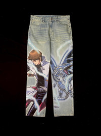 Whoosis x Yu-Gi-Oh! Seto Kaiba & Blue-Eyes White Dragon Graphic Jeans X-Large Ultra-rare collaboration piece from Whoosis and Yu-Gi-Oh!, featuring an oversized full-leg print of Seto Kaiba and his iconic Blue-Eyes White Dragon. Condition: Brand New Size: X-Large Measurements: Waist 92cm / Leg Opening 23cm / Inseam 30cm / Front Rise 93cm Color: Blue / Multicolor * Dedicatedly take care of all products before shipping to customer. - - - ✨Dispatch in 4 days ✨NO Returns / Exchanges. ✨Worldwide shipping. ✨Please check my other items and follow my shop for regular updates. ✨I wish you a pleasant and reasonable shopping. - - - hiphop y2k party holiday vacation trendy gifting casual outfit skater dailyfit cozy acc rare #hype #hypebeast #amine #hiphop #y2k