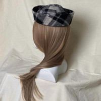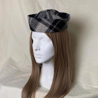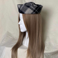Japanese Brand - Wool Blend Grey Plaid Beret Sailor Hat Y2K French Girl