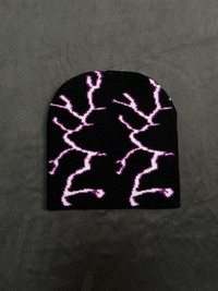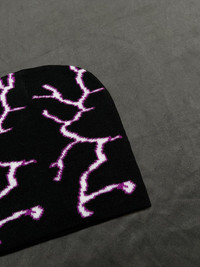 Japanese Brand - Y2k Lightning Graphic Pattern Knitted No Cuff Black Beanie
