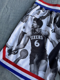 Desc. Lapstone & Hammer have come together with fellow Philly OG's, Mitchell & Ness once again for the Lapstone x Mitchell & Ness Homecourt Collection, a collaborative capsule that pays tribute to three Philadelphia basketball icons - Wilt Chamberlain, Julius Erving & Allen Iverson - who left an everlasting mark on the NBA. The Lapstone x M&N Icon Collage 76ers Short is inspired by vintage photo collage tees from the '80s, and features an allover sublimated black & white print of officially licensed photos of Wilt, Dr. J & AI. The 100% polyester shorts are an Iverson-era silhouette with an elastic waist with a drawstring and red, white and blue striped trim, but cut a little shorter for a more contemporary look. LAPSTONE is stitched on the lower right leg in red-on-white tackle twill. Color: White Condition: Brand New Size: XL *** Feel free to message me and offer your reasonable price. Surely, I will consider for it. buy with confident. Payment - Paypal only. - NO Returns / Exchanges. - *** Worldwide shipping. - *** Pls give your phone number after purchase. - *** Very low express shipping all over the world. - *** Please check my other items and follow my shop for regular updates. - *** I wish you have a pleasant and reasonable shopping.