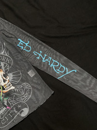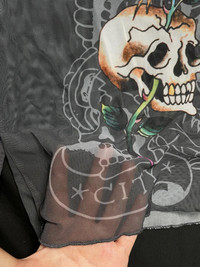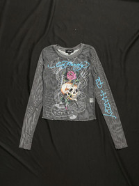 The Mesh Rose Skull Long Sleeve shirt from Ed Hardy combines edgy artistry with everyday wearability. Crafted from lightweight mesh, this top features a striking skull graphic adorned with a rose, offering a unique twist to classic long sleeve designs. Perfect for layering or wearing solo, it enhances both casual and punk-inspired outfits with its bold aesthetic. This versatile piece is a must-have for any fashion-forward wardrobe, making a statement in comfort and style. Size: OS Size: Small Measurements: Length / 76cm Shoulders / 51cm Chest / 110cm * Dedicatedly take care of all products before shipping to customer. - - - ✨Dispatch in 4 days ✨NO Returns / Exchanges. ✨Worldwide shipping. ✨Please check my other items and follow my shop for regular updates. ✨I wish you a pleasant and reasonable shopping. - - - hiphop y2k party holiday vacation trendy gifting casual outfit skater dailyfit cozy