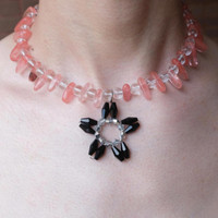 - - - Material: Pink quartz, quality crystal glass beads, nylon monofilament, and stainless steel necklace ends Length: 39 cm + 5 cm extender - - - Please see my other listings for more style. Message me with any inquiries - - - ✨Dispatch in 3 days ✨NO Returns / Exchanges. ✨Worldwide shipping. ✨Please check my other items and follow my shop for regular updates. ✨I wish you a pleasant and reasonable shopping. - - - Tags: y2k unisex festival statement necklace girls giftforher butterfly beaded y2kstyle handmade crafted crystal kidcore goblincore quirky unique romantic dark romance #y2k #gothic #gemstone #whimsical #summer FFN009-FFFPN06