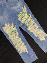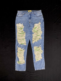 Deadstock Michael Jaejoon Kim Shredded Distressed Denim Jeans Stand out with these Deadstock jeans from Michael Jaejoon Kim, a bold fusion of streetwear edge and artistic expression. These light-wash denim pants feature extreme shredded distressing throughout the front legs, revealing a vibrant green fabric lining underneath for a standout layered look. Condition: Gently Used Size: 38 Measurements: Waist 92cm / Inseam 43cm / Leg Open 20cm / Front Rise 78cm Color: Blue / Green * Dedicatedly take care of all products before shipping to customer. - - - **Please see my other listings for more styles. **Message me with any inquiries - - - ✨Dispatch in 4 days ✨NO Returns / Exchanges. ✨Worldwide shipping. ✨Please check my other items and follow my shop for regular updates. ✨I wish you a pleasant and reasonable shopping. - - - hiphop y2k party holiday vacation trendy gifting casual outfit skater dailyfit cozy #hype #rare #deadstock #hiphop #drill