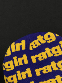 Rare Stray Rats Rat Logo Black No Cuff Jacquard Knit Beanie