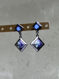 Black Diamond-Shaped Dangle Earrings with Blue patterned Enamel Brand new deadstock earrings No tarnish, slight scratch on the arch stud, not obvious as can see from the photos. Full Earring Size (length x width): 4 x 2.1 cm Earring Pendant Size: 1.5 x 1.5 cm Payment - Paypal only. - NO Returns / Exchanges. - *** Worldwide shipping. - *** Low shipping cost. - *** Pls give your phone number after purchase. - *** Very low express shipping all over the world. - *** Please check my other items and follow my shop for regular updates. - *** I wish you a pleasant and reasonable shopping. Tags: classic / 00s / 90s / jewellery / earrings / modern / jewelry / free shipping / natural stone / gemstone / gift / birthday / Christmas / womens / ladies / trendy / vintage / silver / unisex / deadstock VTDE034