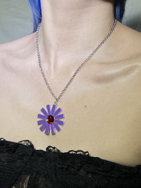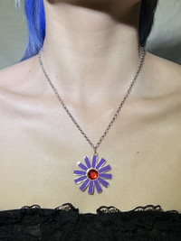 Vintage - Y2K Purple Red Rhinestone Sunflower Statement Necklace