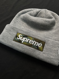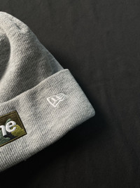 Rare Supreme New Era Camo Box Logo Beanie Hats Grey OS
