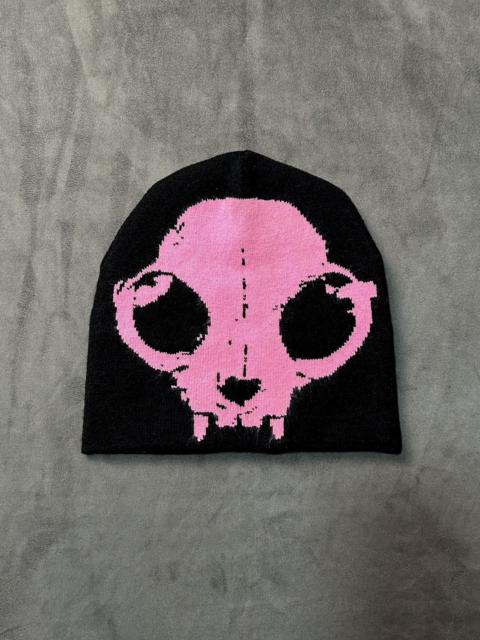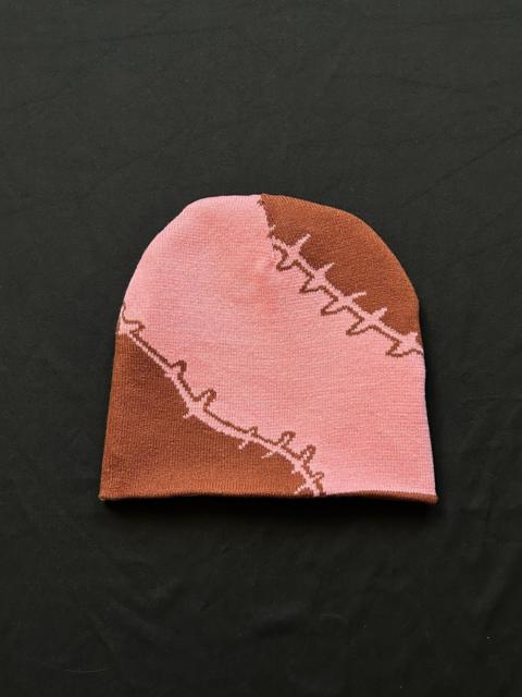 Japanese Brand - Deadstock Stitch Graphic No Cuff Pink Beanie Hat OS