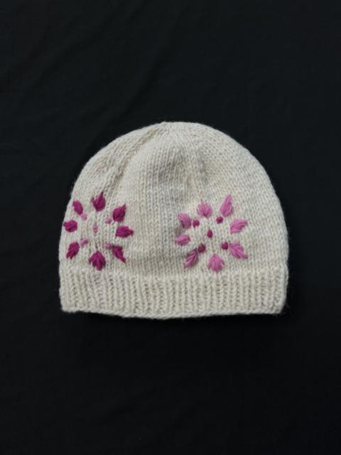 Rare Pink Flower Pattern Made in Nepal Handmade Beanie Hat