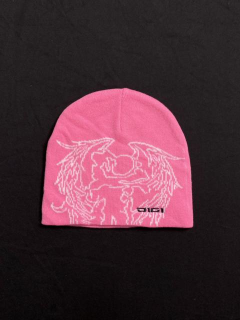 Japanese Brand - Rare Skeleton Graphic design No Cuff Knit Pink Beanie OS