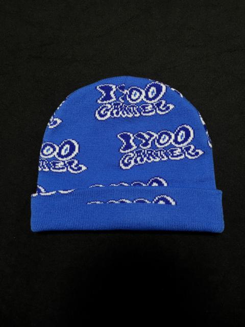 Japanese Brand - IYOO Carter Graffiti Fonts No Cuff Knit Beanie Hat Blue
