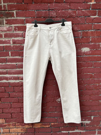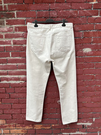 Rick Owens DRKSHDW Performa Cut Denim Jeans in "Natural" One of the more forgiving and relaxed cuts of RO denim Color is an off-white, cream-ish color Features contrast stitching Button fly DRKSHDW ribbon tag at waistband DU02A3362-DW Size 36 - fits true to size Very good condition, only wore them out one time to a dinner date Purchased from SSENSE in November of 2021 Selling because I never wear them, white jeans just aren't for me Feel free to message me with any questions Check out my other listings for more large(r) sized Rick bottoms