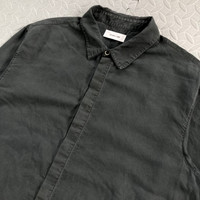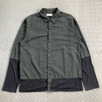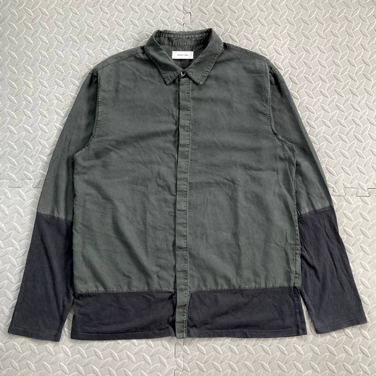 Helmut Lang Two Tone Black Shirt Brand: Helmut Lang Year: Color: Black Size on tag: Large Sizing: Measurements (flat, not stretched): Shoulders: 20” Sleeves: 26” Width: 22” Hem: 22” Length: 29.5” Color rating: 8.5/10 Condition overall: 8.5/10 Issues: signs of usage