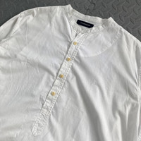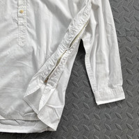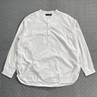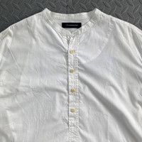Brand: John Undercover Year: Color: White Size on tag: 2 Sizing: Measurements (laid flat) Shoulders: 19” Sleeves: 23.5” Width: 24” Hem: 23” Length: 29” Back: 30” Color rating: 9/10 Condition overall: 8.8/10 Issues: minimal signs of usage, small pinhole