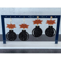 I AM I LOVE! Not gonna lie- I impressed myself with these babies! They are HOT! Look at the blazing orange glitter acrylic set atop the sparkly black glitter acrylic bomb! You’re choice of hoops or ball studs. Just make your selection in the drop down. These earrings are handmade by myself. I cut and layer each piece of acrylic. I also hand paint the engraved areas. Acrylic being a plastic is extremely lightweight to wear. These earrings are comfortable for all day/all night wear.