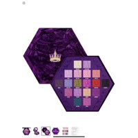 Presented in a high-end, crushed faux-velvet hexagon with a gold metal clasp for that mischievously royal final touch. This palette is serving our original three luxury formulas of matte, metallic, foil, and our Extreme Wet' formula! Specifically featured with shades Wet Jewel' and 'Pink Magic', these contain blinding pearls and liquid binders for that sexy wet effect. Matte Shades: Your Majesty, Deviant, Royal Pain, Dungeon*, Scandal Water*, High King*, Vivid Mood*, Monarchy, Blood Queen*, Vile Serpent. Matte with Sparkle: Executioner Metallic: Take The Crown*, Beauty Sleep* , Betrayal*, Bleeding Heart* Foil: Sworn Enemy Extreme Wet: Wet Jewel, Pink Magic* Extreme Payoff. Next Level. One of a kind. Vegan + Cruelty-free
