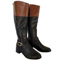Marc Fisher Hailin Wide Calf Leather Tall NWT Shaft Boots MSRP: $198 Size: 8.5| Marc Fisher Marc Fisher Hailin Wide Calf Leather Tall Shaft Boots New with box (see note below about box) Style: Hailin Wide calf, croco-embossed top cuff, curved topline, full inside zipper, strap with hardware detail, back double gore Flexible bottom unit Approximate measurements: Flared heel 1.5"H; Shaft 15.2"H; Opening circumference 15.6" Fit: true to size Cow leather/man-made/textile upper; man- made balance *Please note: there is some damage to the original box which occurred in shipment to me.