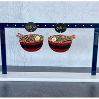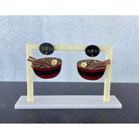 Noodle Bowls!!! Look at the work and dear I’m that went into making these for you! From the chopsticks, to the noodles, to the egg, every detail is thought of. Size Details: Approximately 2” wide & 1.8” long. These earrings are handmade by myself. I cut and layer each piece of acrylic. Acrylic being a plastic is extremely lightweight to wear. These earrings are comfortable for all day/all night wear.