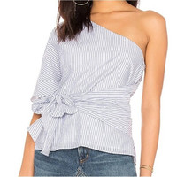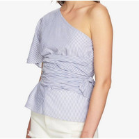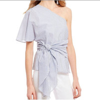 1. State - 🌺 1.State Womens High Tide Top Blue White Striped One Shoulder Tie Waist XS New