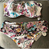 Swiminista Christian $210 Lacroix Joy Bikini Top & Classy Bottom Swimsuit SET XL Brand new with tags Christian Lacroix and Swiminista collaborate on this luxurious collection in the Josephine print Joy bikini top is lined with adjustable tie closure and removable straps. Awesome support and comfort. It has braided detailing that gives the suit a feminine look and offers support. The classy bottom is a high-waisted style with a tie embellishment on the front and fully lined Ruching on the bottom creates a figure-flattering look Fabrics are made from sustainable polyester harvested from recycled water bottles The slight stretch comes from a touch or spandex This two-piece suit retails for over $210 Pattern placement may vary due to the cut of the fabric