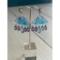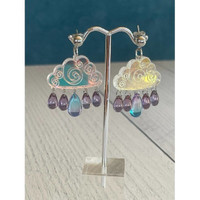 Iridescent Cloud Earrings with Beaded Raindrops ~ Rain Cloud Earrings