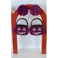 Are you nostalgic for your childhood & getting that plastic pumpkin candy bucket to go trick or treating with? We have created the same one into glitter earrings. You choose between the green or purple colors. Size Details: The finished earrings are approximately 1.75โ wide and 2โ long. These earrings are handmade my me. I cut the acrylic with my laser and assemble the layers. Acrylic earrings are very lightweight to wear. you can easily wear them from work/school in the morning until your evening comes to an end.