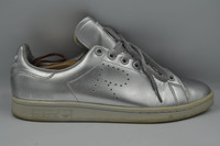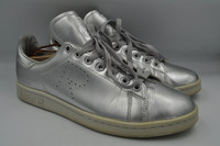 Adidas - Raf Simons - S/S 16 - Metallic Stan Smith Spring/Summer 2016 sees yet another round up of adidas models, reimagined with high-fashion aesthetics. First debuting in 1971 as a tennis all-star sneaker, the Stan Smith has defined itself as today’s streetwear legend - now reimagined with the Raf Simons luxurious stamp. The silver metallic leather uppers substitute the perforated three-stripe detailing with the iconic ‘R’, finished with branding to the rear quarter and adidas branding to the heel. *Leather Uppers *Silver Metallic Finish *Perforated R Detailing *Rubber Cupsole Tagged Size: 9.5 Condition: 8.5/10 Flaws: Signs of Usage, Cracks on Outsole (Needs Resole) Made in: China SRP: $279 TAKE NOTE: 1. Be mindful that this piece has led a previous life, and may tell its story through minor imperfection. 2. See measurements written in the description 3. In some rare cases, customs duty may be charged, but in that case, please pay by yourself Courier: DHL Express ONLY From: Philippines ETA: 2-4 days from the date of shipment